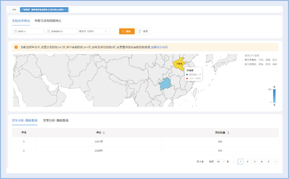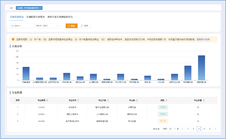 一方面,通过“全国专业布点”分析,清楚知道开设专业在全国处于什么竞争位置,是该重点发展还是优化调整,避免盲目跟风。