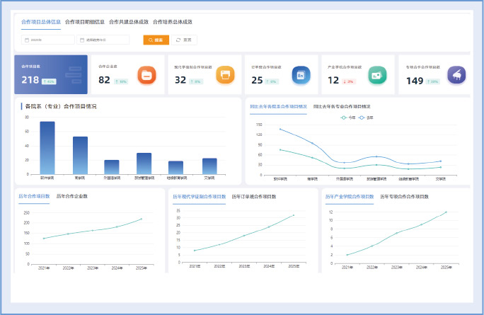 对 “现代学徒制”、“订单班” 等合作培养模式的项目数、培养人数、投入经费等进行全过程监控与效益分析。